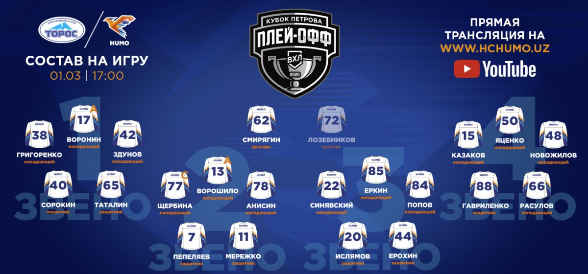 Состав «Хумо» на пятый матч плей-офф с «Торосом»